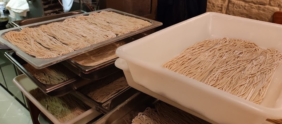 Nouilles servies dans notre bouillon de poulet maison parfumé à l’huile de sésame, garni de légumes Bio et poulet (ou végétarien).