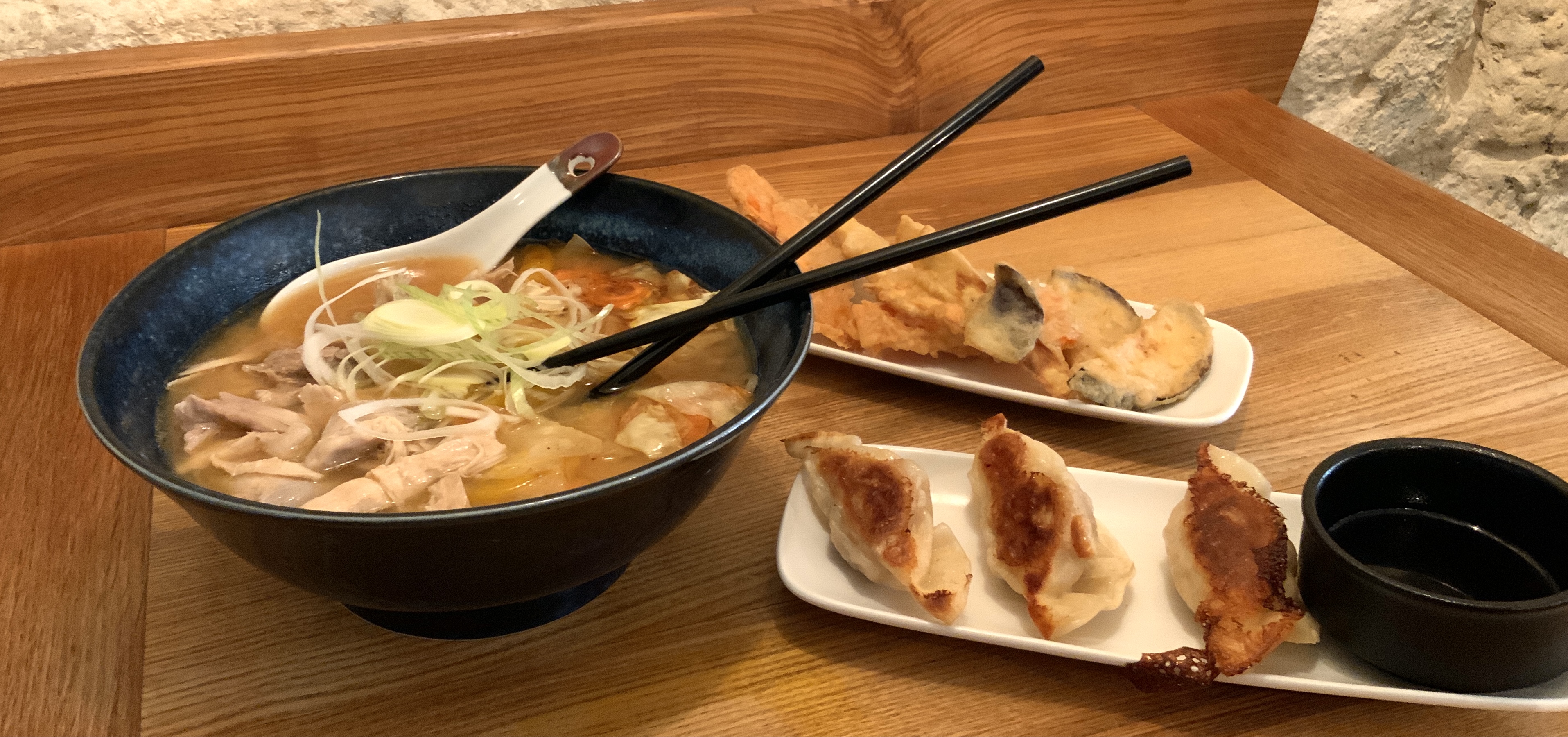 Notre Chef confectionne tous les jours les nouilles japonaises et prépare de délicieux bouillons pour vous offrir des plats goutés, fins et savoureux. Nos plats sont accompagnés d'une garniture locale avec des légumes de saison, frais et locaux, du poulet ou tofu.